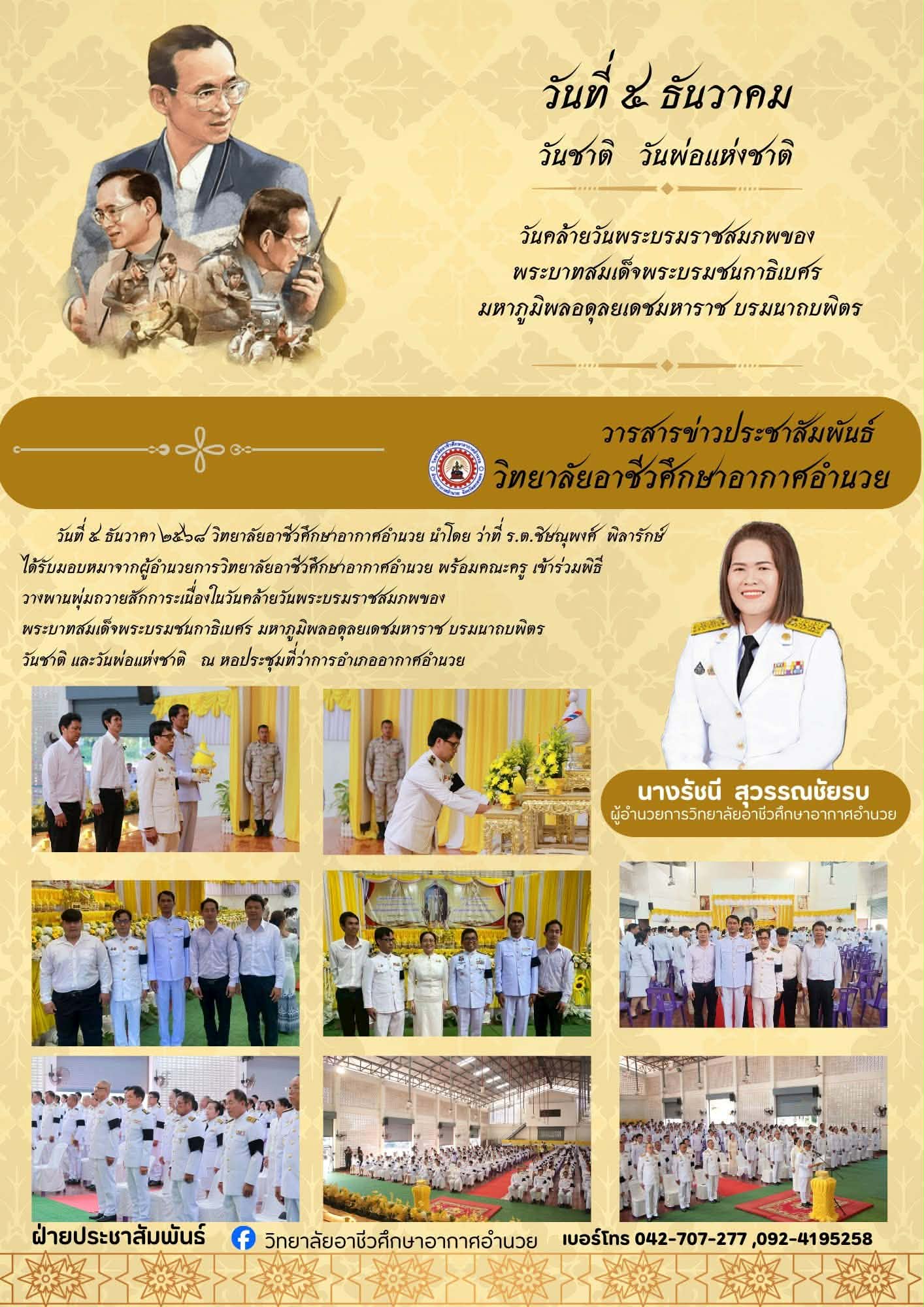 พิธีถวายเครื่องราชสักการะและวางพานพุ่มดอกไม้ถวายพระพรชัยมงคลวันคล้ายวันพระบรมราชสมภพ พระบาทสมเด็จพระบรมชนกาธิเบศร มหาภูมิพลอดุลยเดชมหาราชบรมนาถบพิตร วันชาติ และวันพ่อแห่งชาติ ๕ ธันวาคม ๒๕๖๘